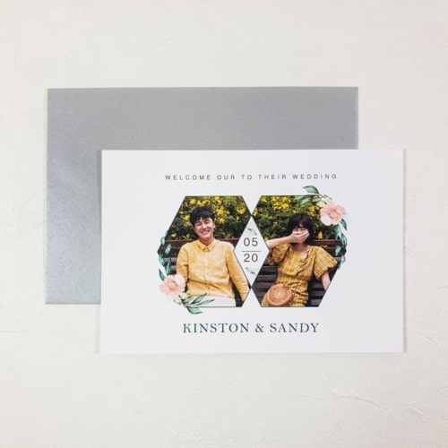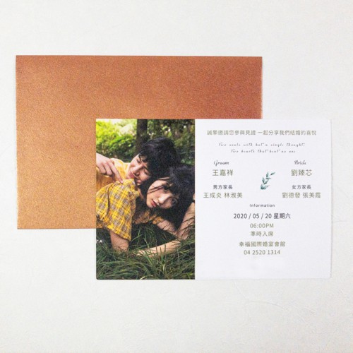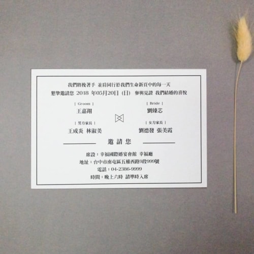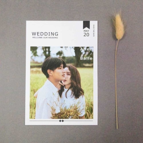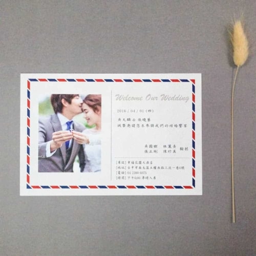 結合人的喜愛(不愛繁瑣),單張就很美、單張也要霸氣、單張就是直接,我們明信片結合美式以及韓式的簡約感,再搭配現在流行韓風罩去搭配整個喜帖質感。