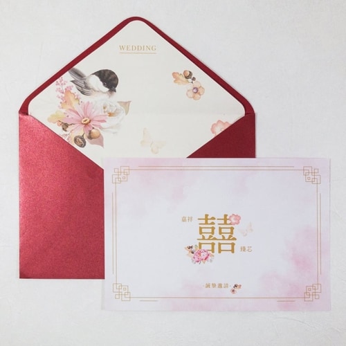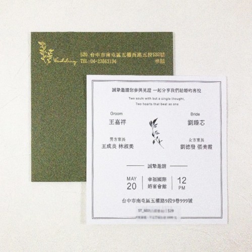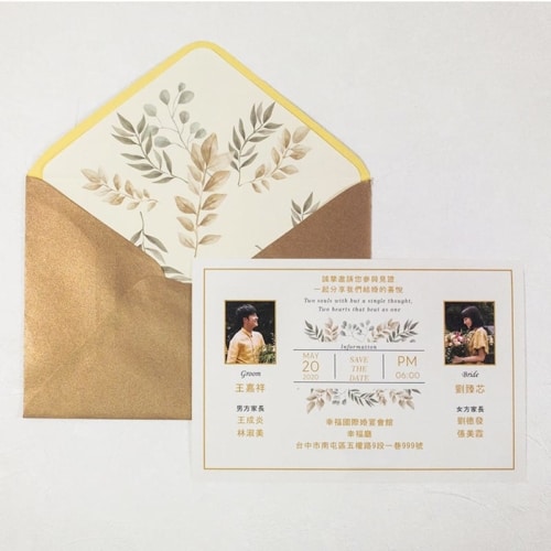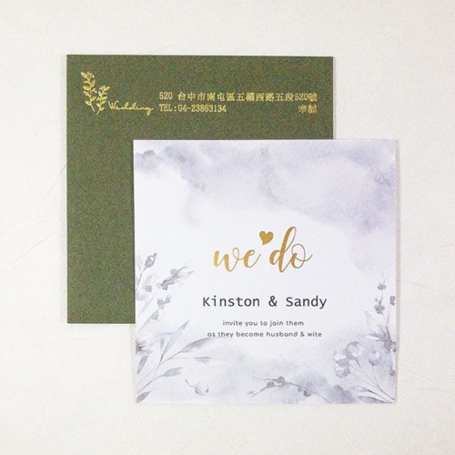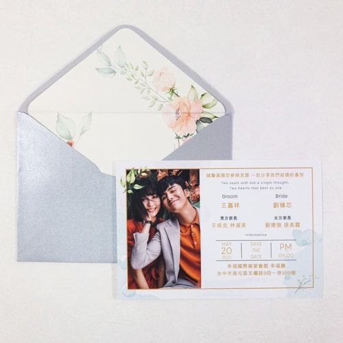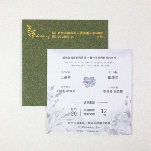 我們希望婚卡也可以搭配成一整組的感覺所以從婚卡內卡到信封內襯到信封外層將元素整體到味兒~希望給想要一整個系列的新人供選擇。