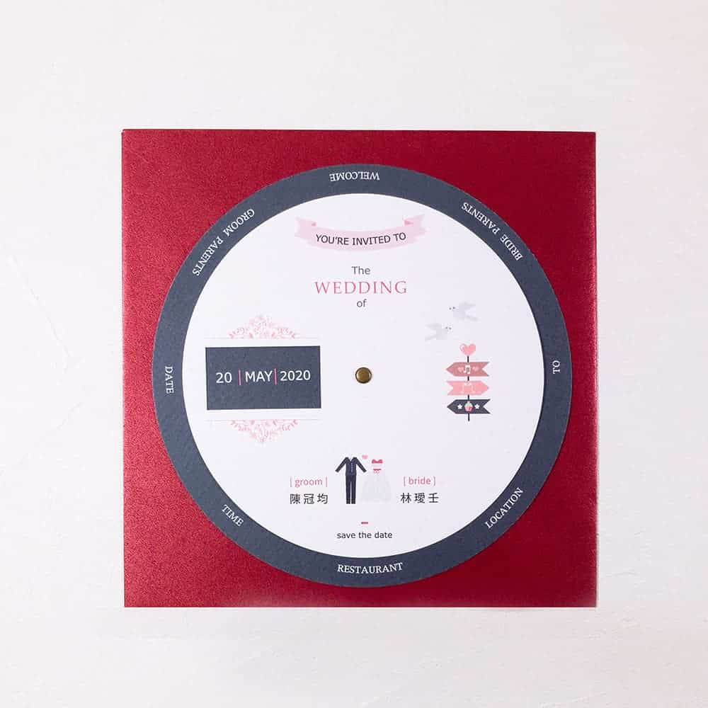 • 中間會打上帽釘讓您的喜帖可以轉圈圈