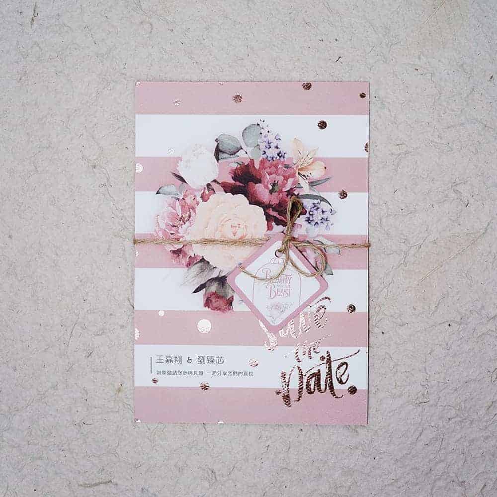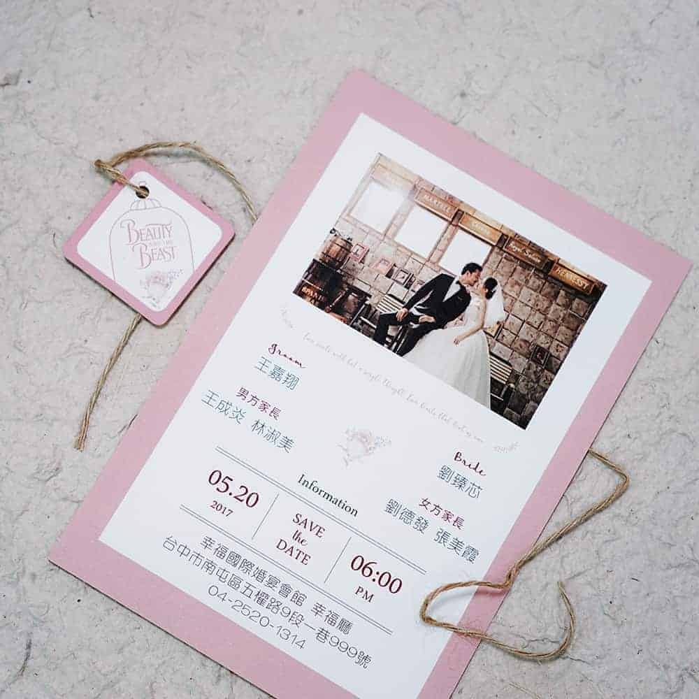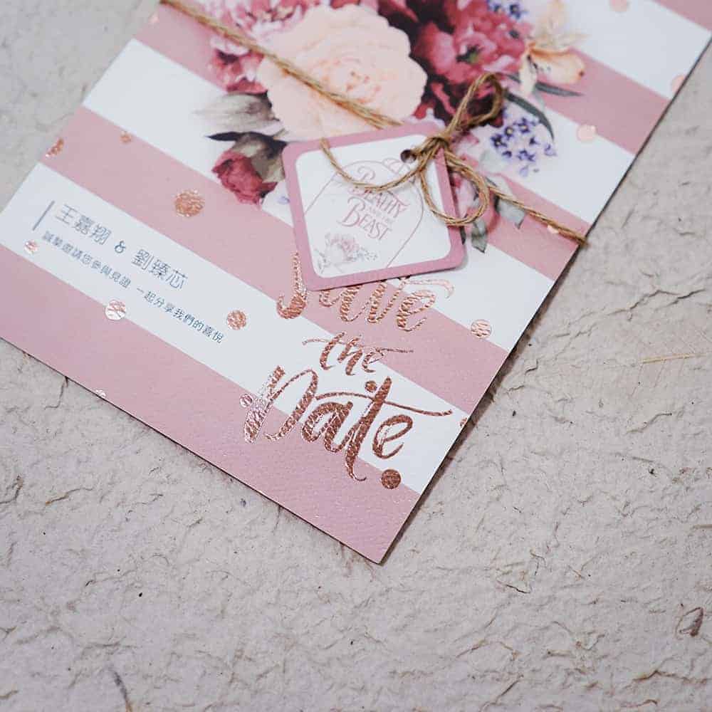 美國迪士尼公司的浪漫奇幻歌舞電影,《美女與野獸》故事劇情唯美是多數人小時候必看長大後必回憶的影集。因此我們將喜帖與此劇做結合讓喜帖更有電影魔幻的力量,讓人收到喜帖更是腦海浮現電影情節。
