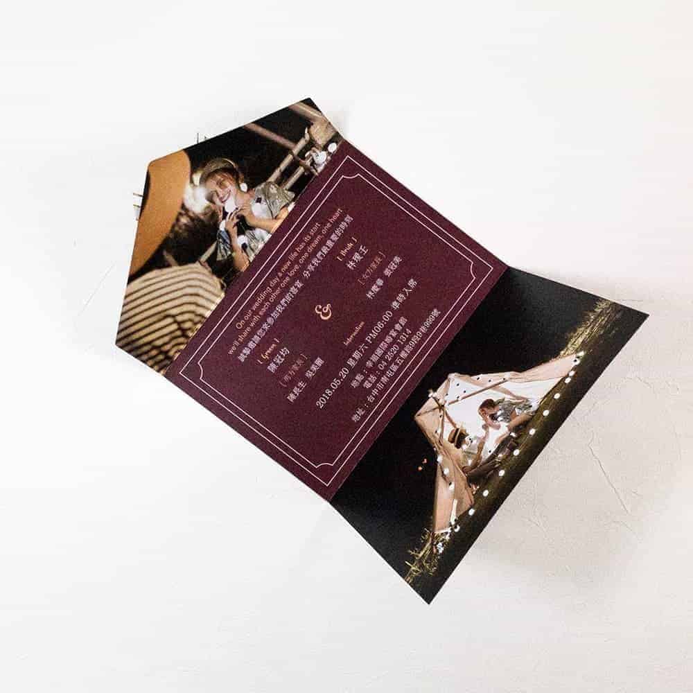 喜帖尺寸:進口炫光300磅_16.2×31公分(含出血)_三折軋型
