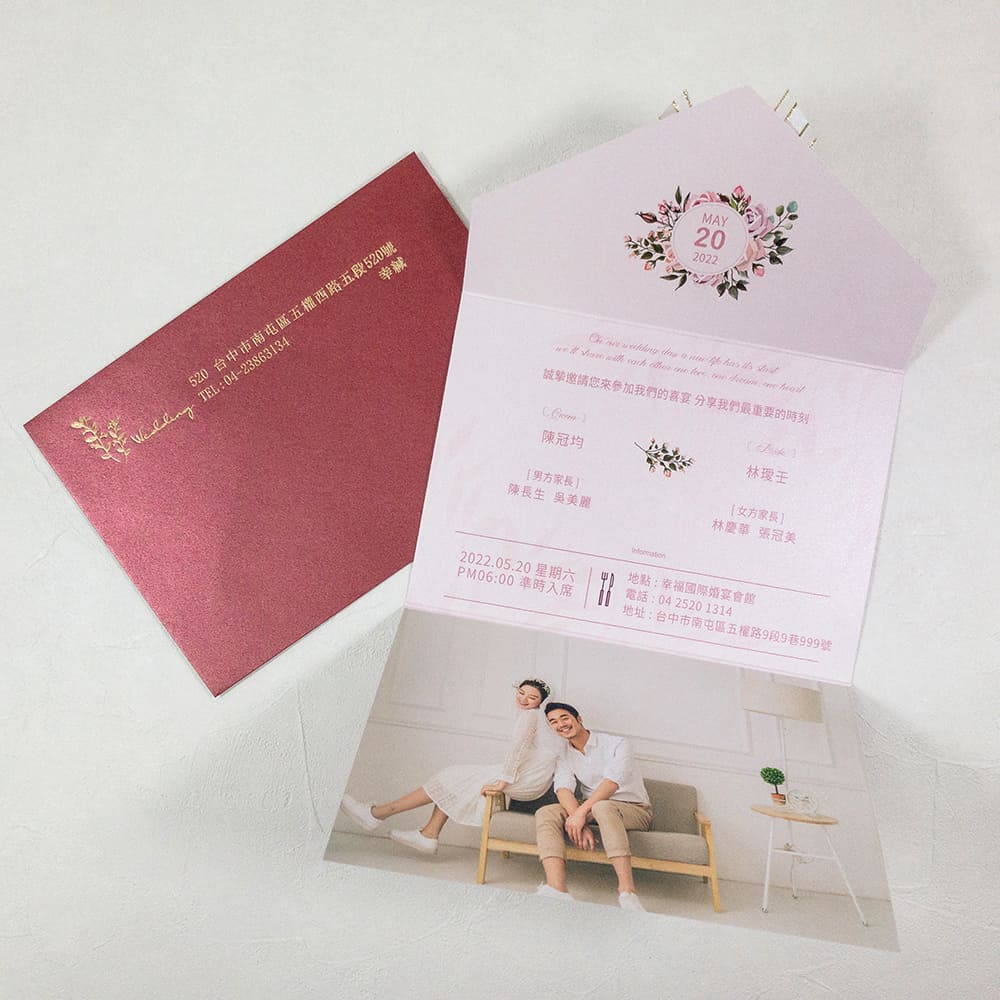 喜帖尺寸:進口炫光300磅_16.2×31公分(含出血)_三折軋型