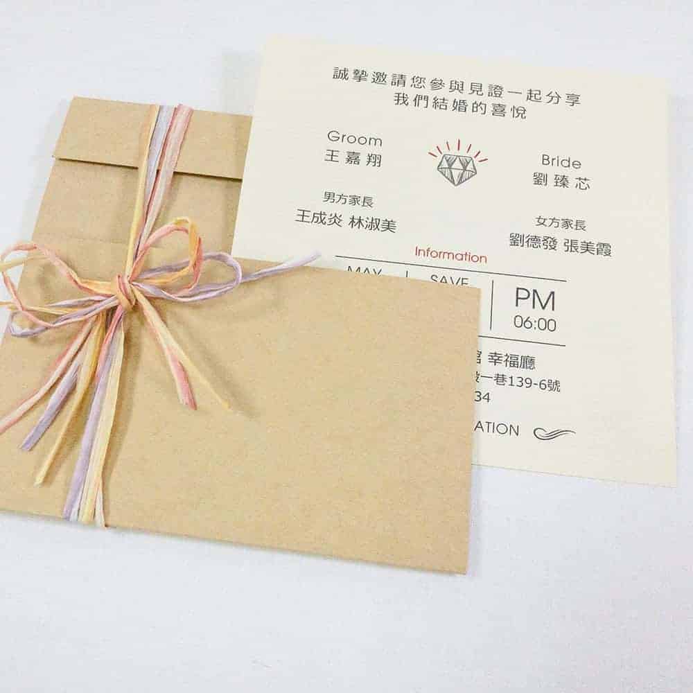 • 喜帖材質:外層 牛皮綿絲180磅+內層 米象牙150磅