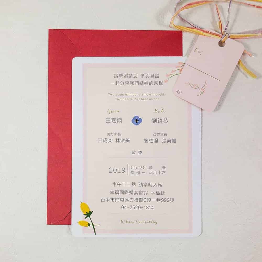 喜帖尺寸:15.4X11.2公分(含出血)_單張+吊牌4.4×6.4公分(含出血)