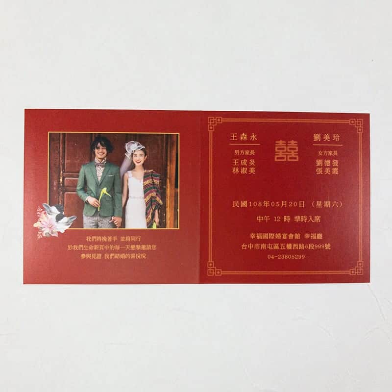 含喜帖正面燙金