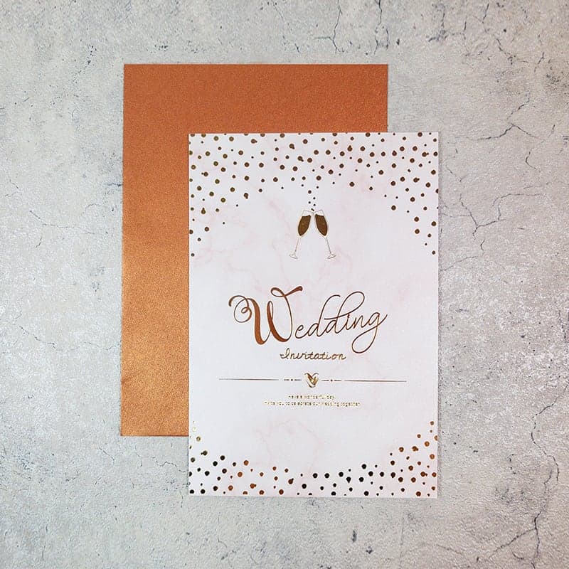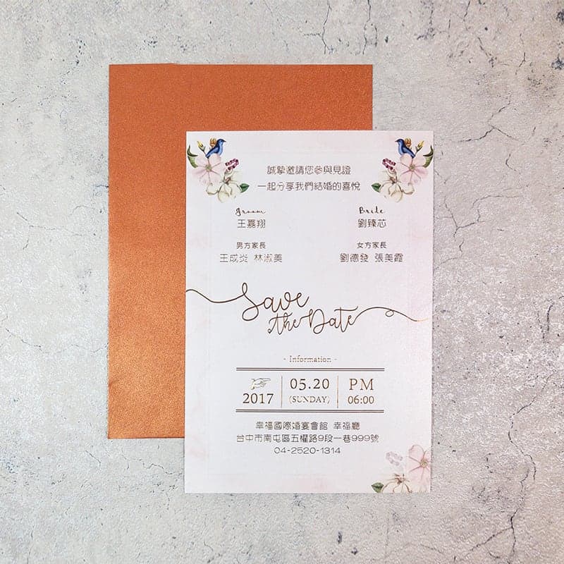 含喜帖正反面燙玫瑰金,正面公版燙背面則是燙內文~