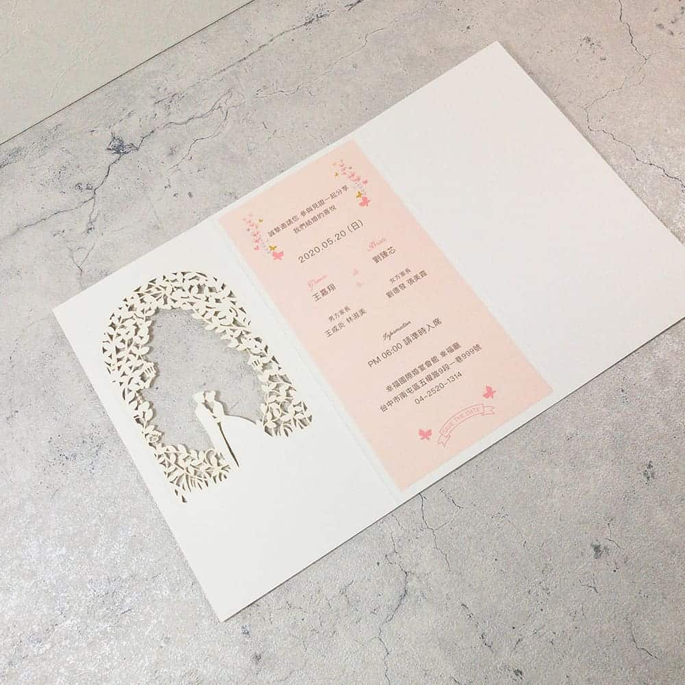 • 喜帖材質:外層_美術紙加雷雕燙金 | 內文_米象牙200磅