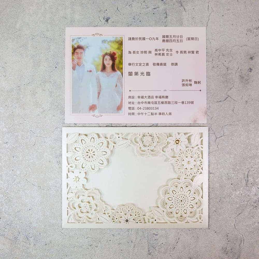 喜帖也可以打扮得美美的 !手札幫您的喜帖穿上漂亮的外衣 ,精緻的雷切圖案使您的喜帖更加豐富 , 讓收到的賓客打開滿滿的驚喜!