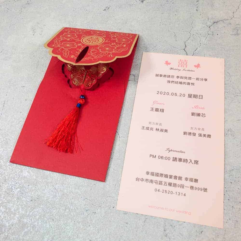 • 喜帖材質:外層_美術紙加雷雕燙金 | 內文_米象牙200磅