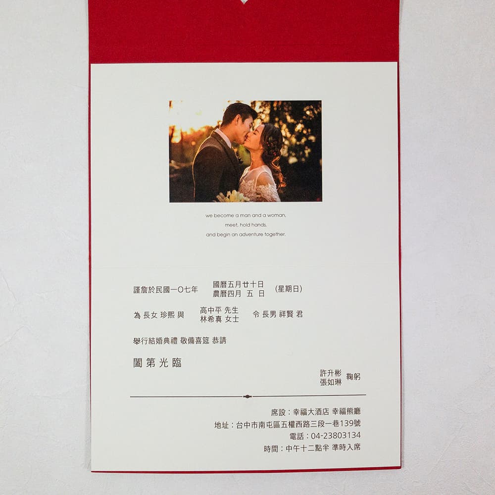 喜帖材質:外層_美術紙加雷雕燙金 | 內文_米象牙150磅
