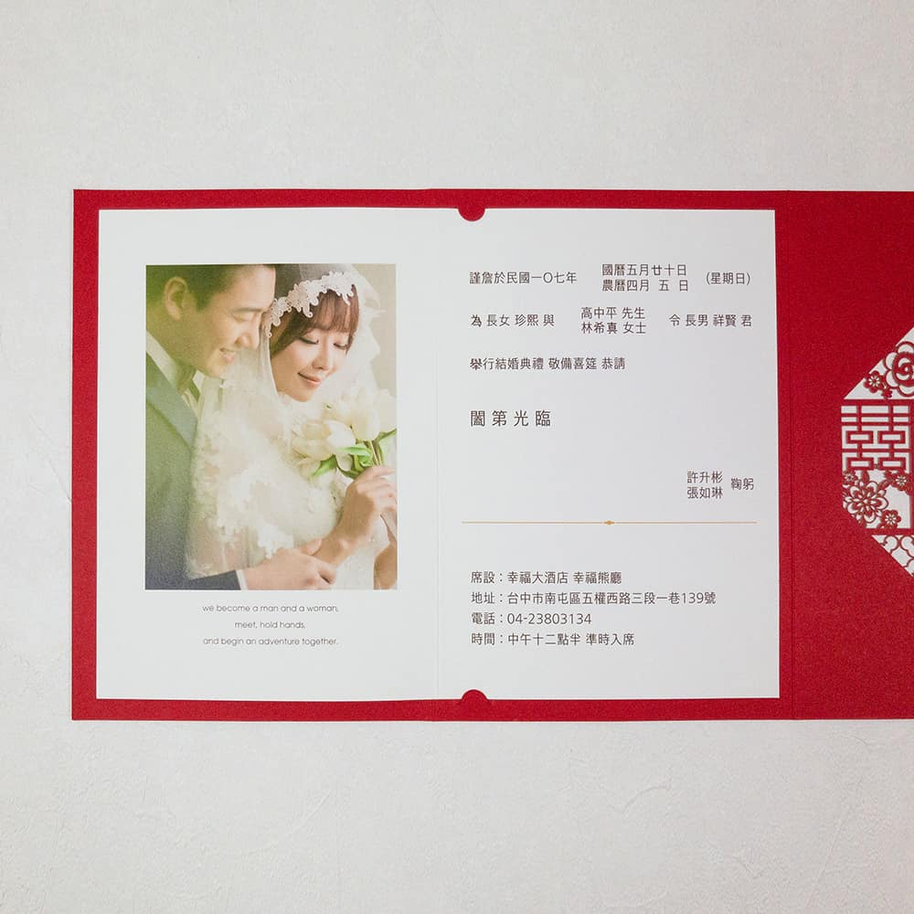 喜帖材質:外層_美術紙加雷雕燙金 | 內文_米象牙150磅