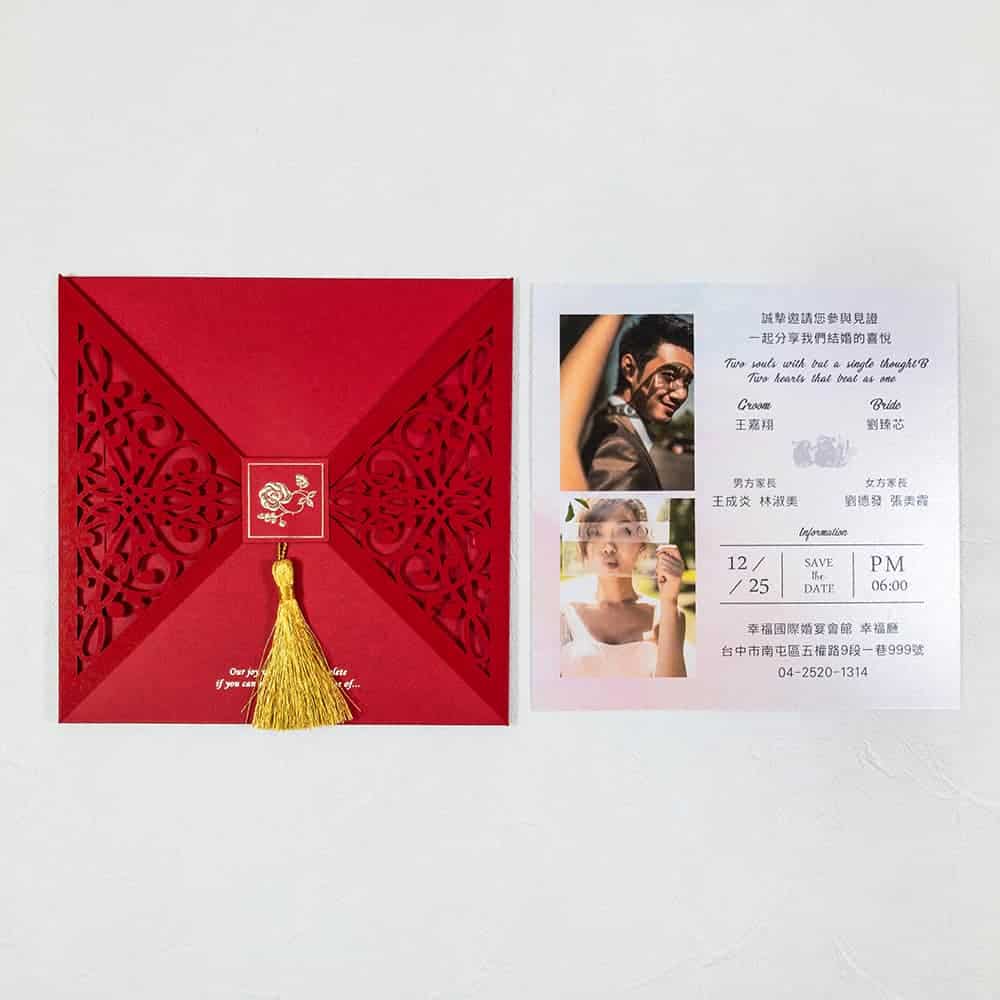 喜帖也可以打扮得美美的 !手札幫您的喜帖穿上漂亮的外衣 ,精緻的雷切圖案使您的喜帖更加豐富 , 讓收到的賓客打開滿滿的驚喜!