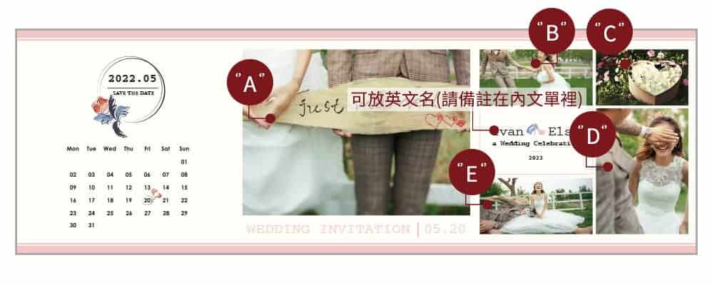 請按照指定照片位置備註在您的婚紗照裡喔!這樣我們會比較好排照片