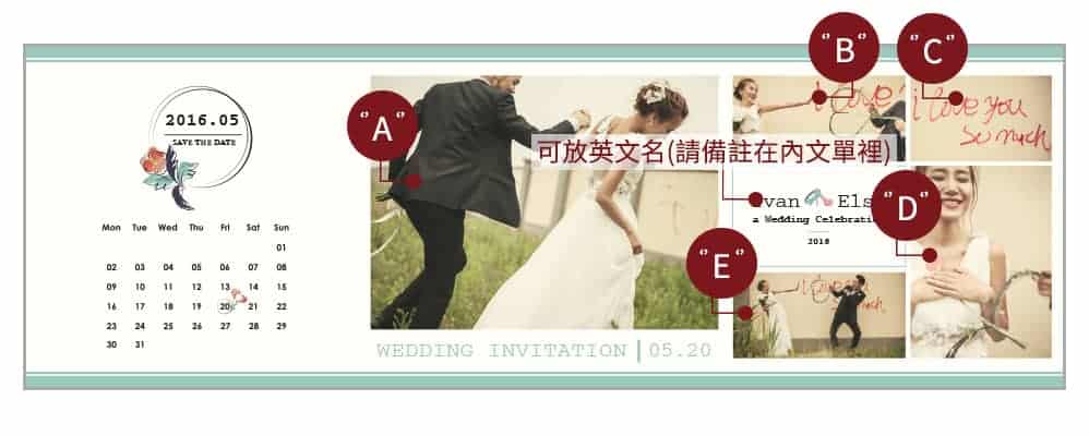 請按照指定照片位置備註在您的婚紗照裡喔!這樣我們會比較好排照片