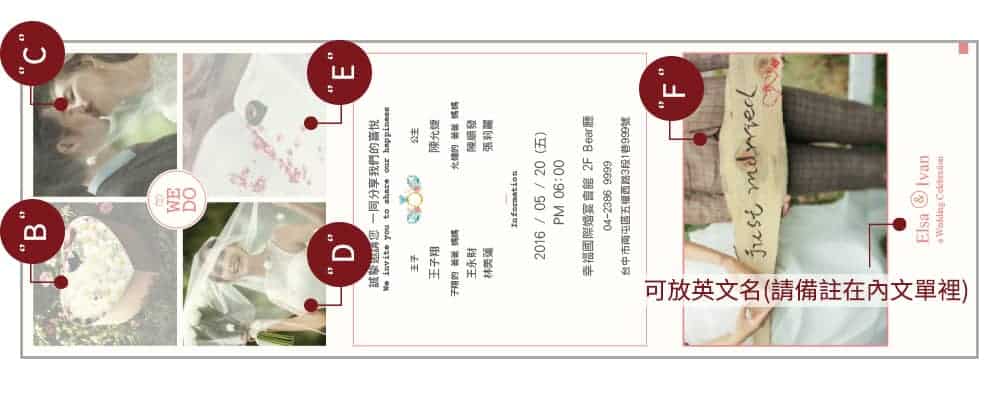 請按照指定照片位置備註在您的婚紗照裡喔!這樣我們會比較好排照片