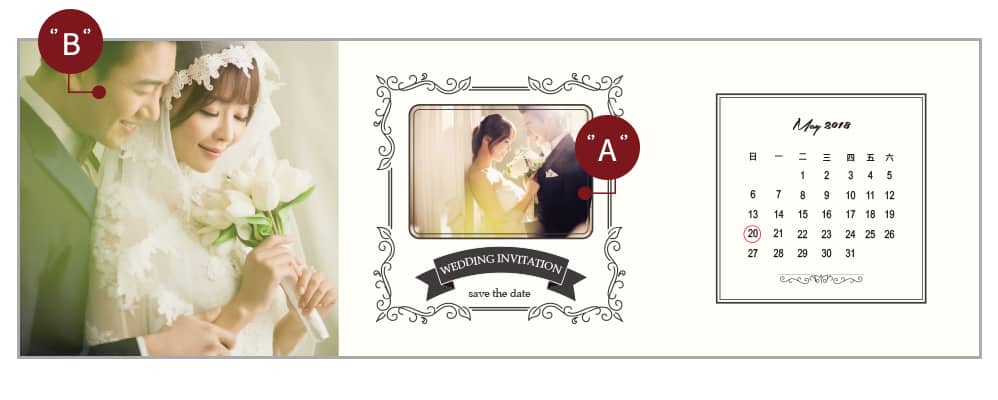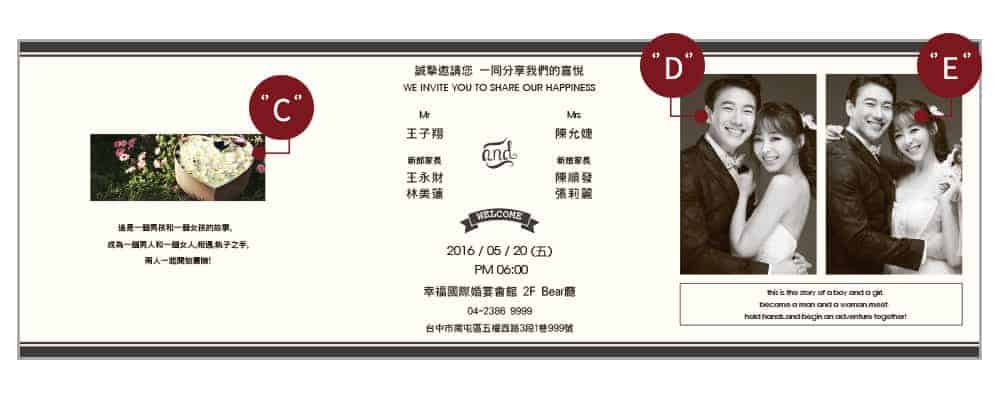 充滿札卡風一直是我們的設計元素,將照片放入讓喜帖不單單只是邀請賓客用更可以更豐富完全呈現,讓賓客可以一看在看驚喜依舊在。