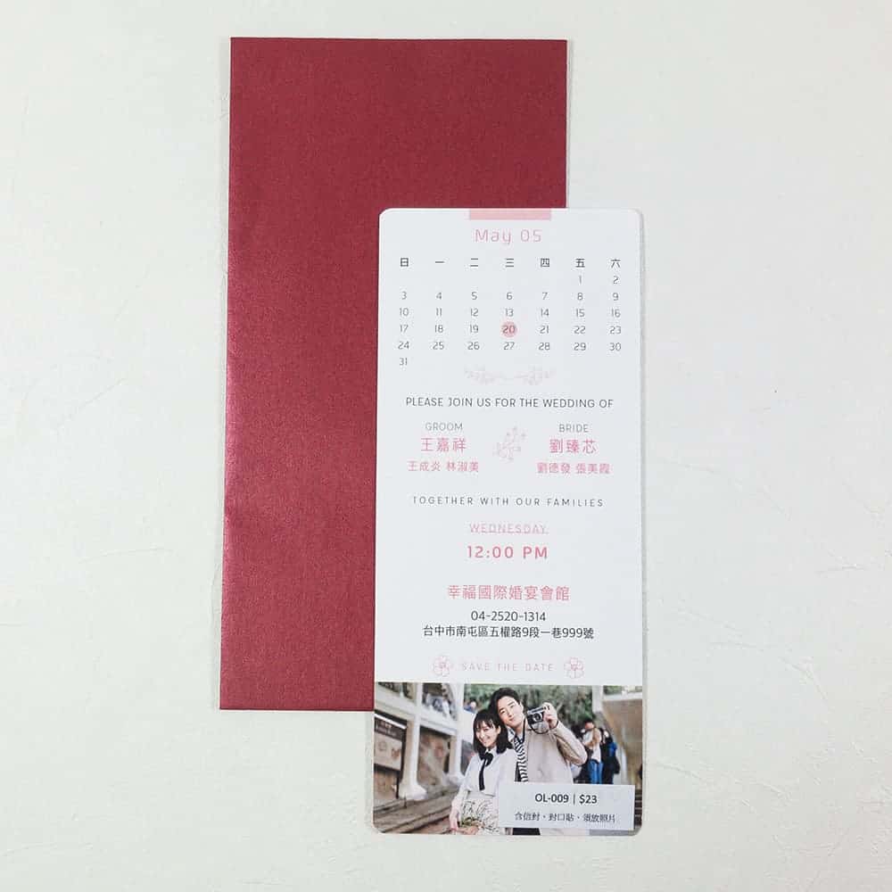 我們會示範一張放入您所訂購之喜帖內供您參考。
