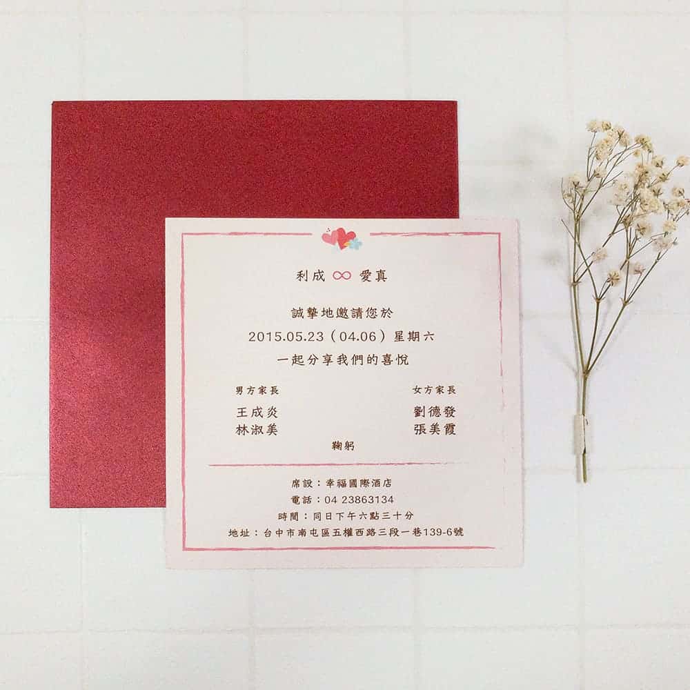 • 喜帖尺寸:14.5×14.5公分(含出血) 請注意此款為明信片單張款式喔