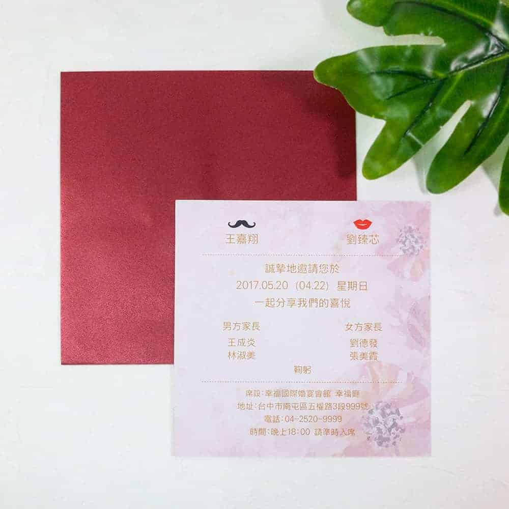 喜帖尺寸:14.5×14.5公分(含出血) 請注意此款為明信片單張款式喔