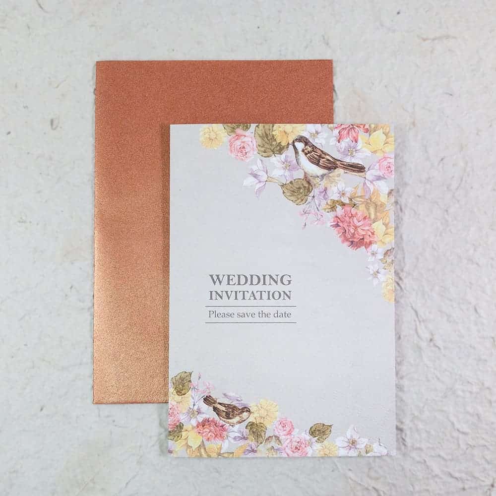 復古鳥來報喜~帶點復古水彩花的味道讓喜帖呈現另一種不同的復古風