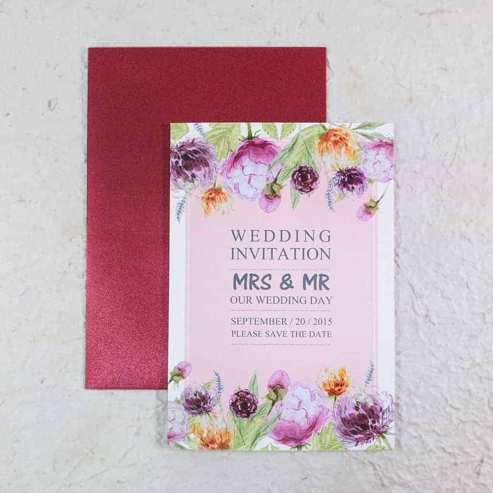 美式水彩風,強調美式的簡約但又帶上暖色系的水彩花讓人收到喜帖是一種舒服的觀感感覺
