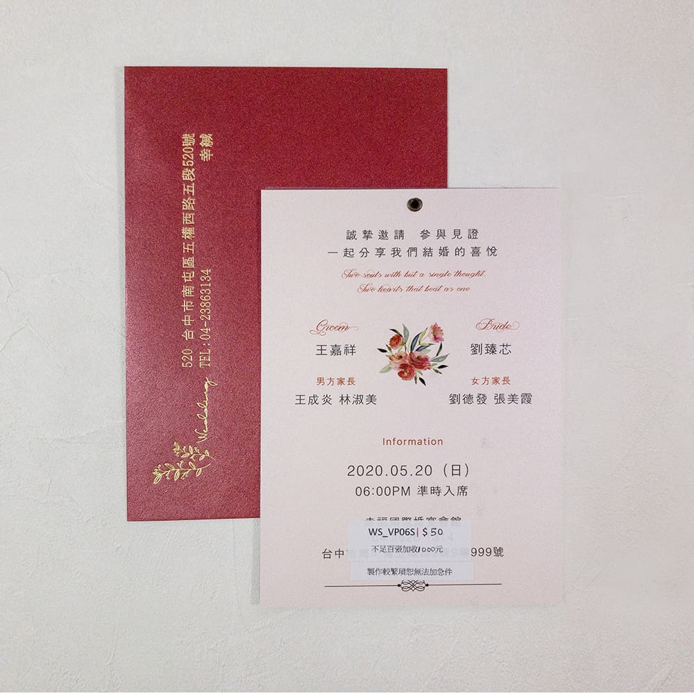 • 喜帖尺寸:11.2×15.4公分(含出血)單張