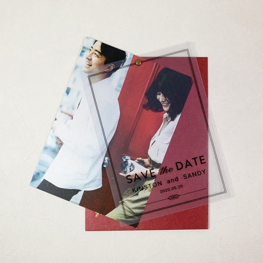 • 喜帖材質:炫光300磅+半透明PP紙+帽釘