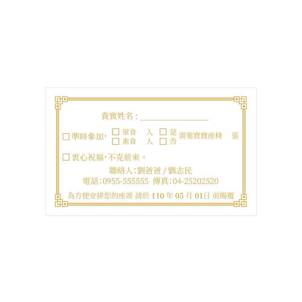 {貼心提醒:背面為白色底金色字因為礙於傳真使用故設計白底,另外公版恕無法更改更動版型及圖文。}螢幕與實品有色差 , 敬請見諒 !
