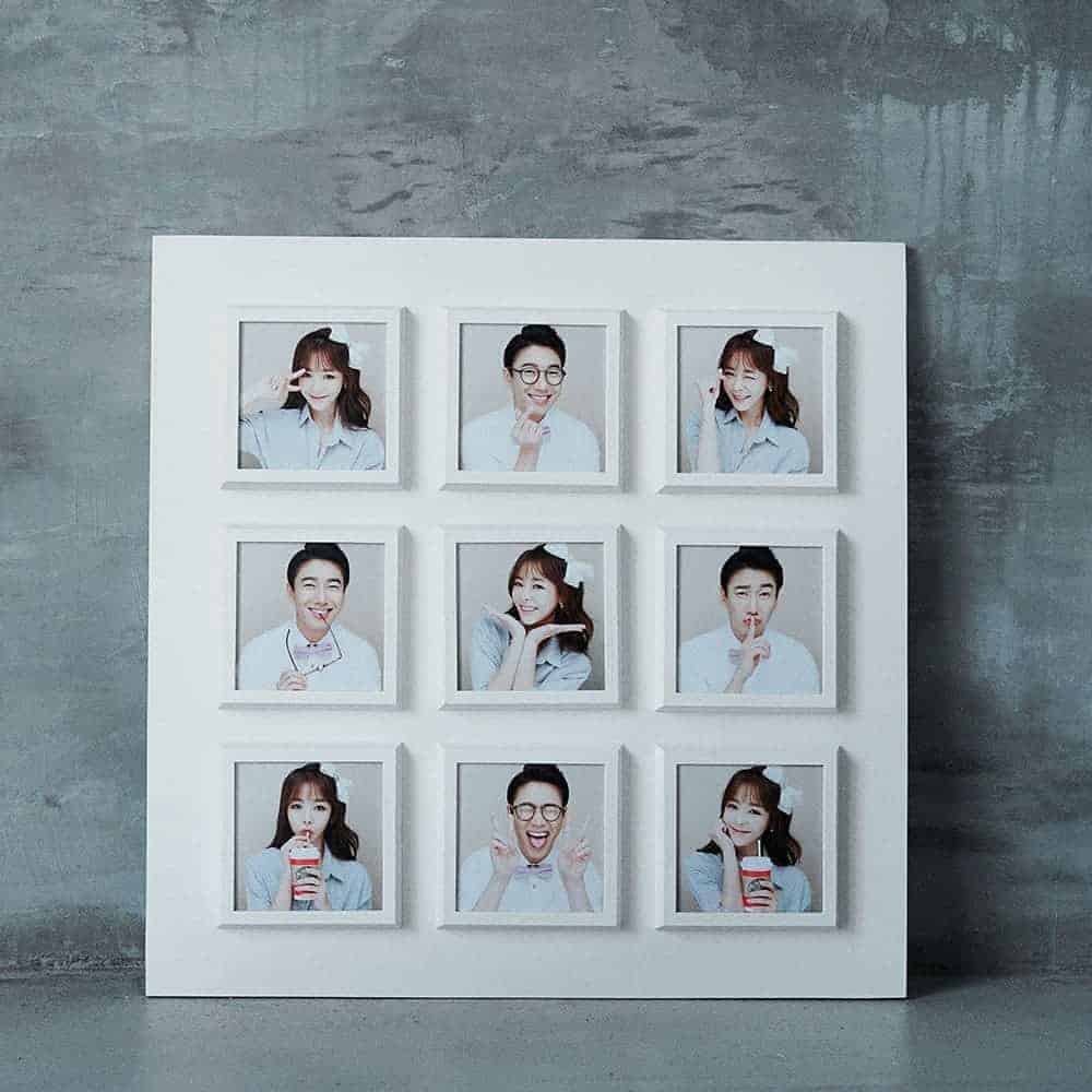 PhotoGrid is a multi picture white-painted wood frame that makes it easy for you to instantly create a custom photo collage showcasing 9 individual 4 x 4 inch photos from a memorable event, occasion, or social media.