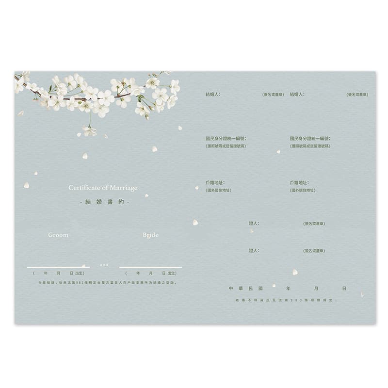 結婚書約一套式賣,白色禮盒精緻掀開後將有一層防層膜保護著,一本結婚書約加上一張書約(可以給戶政事務所喔) 本規格完全符合戶政所規定。